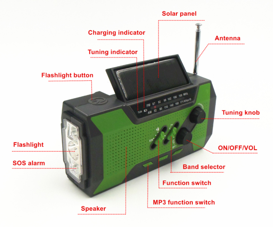 Solar Hand Crank Dynamo power recharging